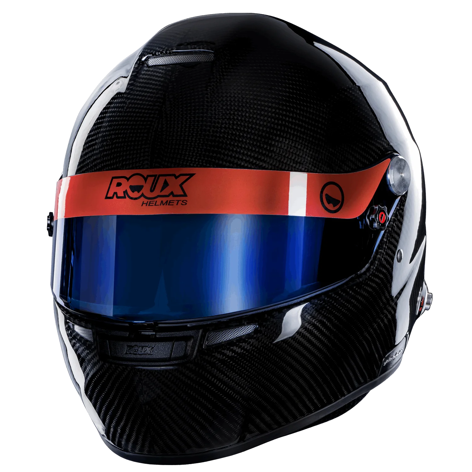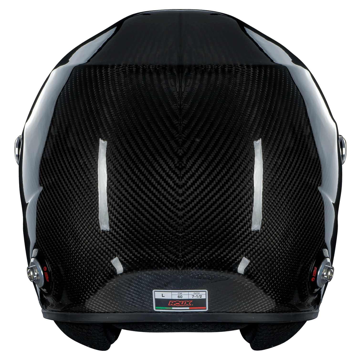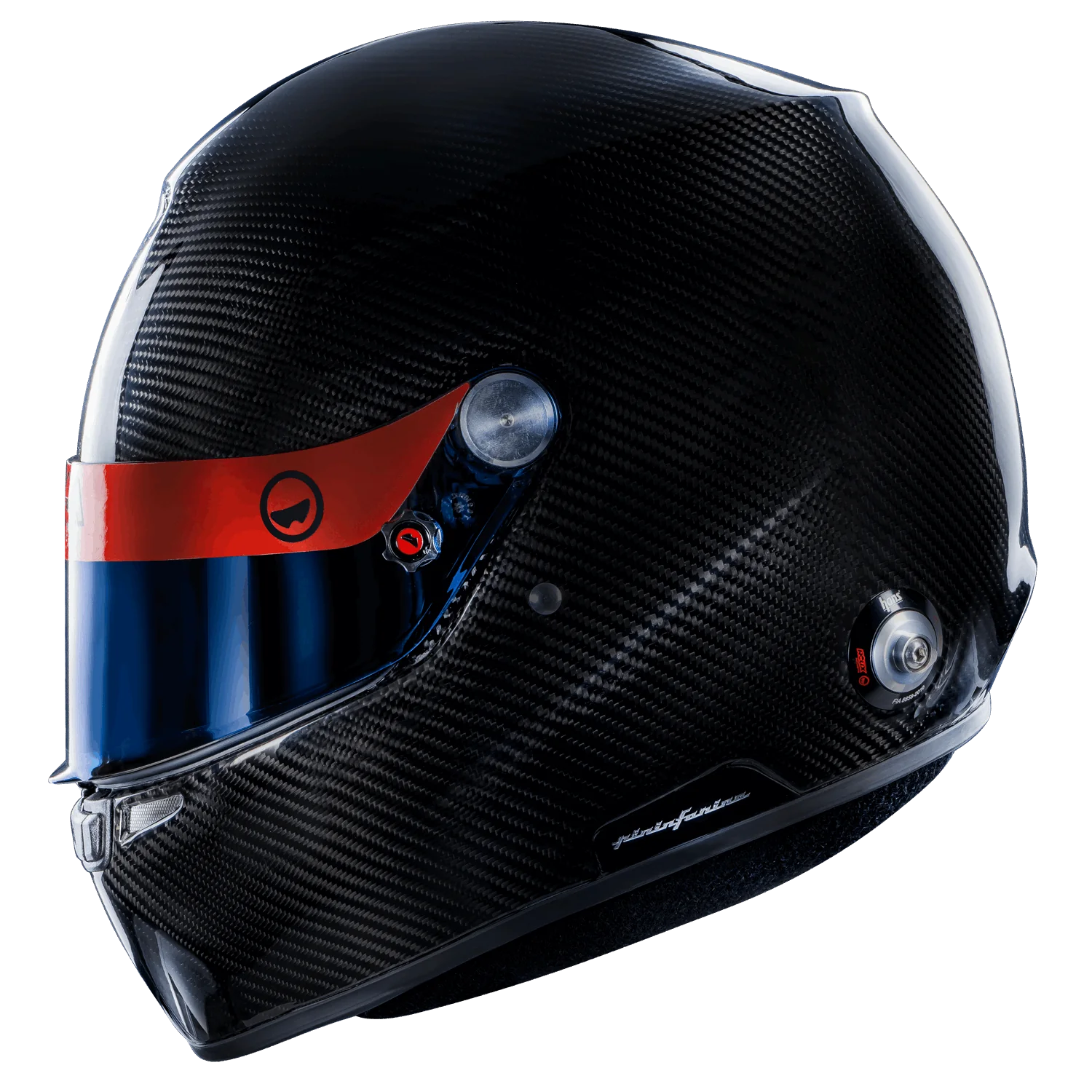 Pininfarina and Roux have created the ultimate open-cockpit Formula helmet that includes a push button fastener is included on the shield. Helmet straps are rubberized to prevent fraying. The extended shield also provide Ultra wide vision for extra peripheral vision. D rings are aluminum to prevent corrosion